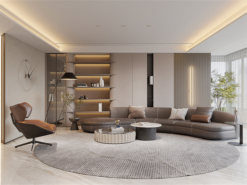 本案米白、浅灰、木棕等中性色调贯穿全局。从客厅的大气起居,到书房的静谧阅读、卧室的私密休憩,再到卫生间的品质卫浴、衣帽间的精致收纳,各空间皆以利落线条、克制软装,呈现功能与美学的视觉平衡,尽显“少即是多”的极简质感,适配多元且追求纯粹的居家生活方式。